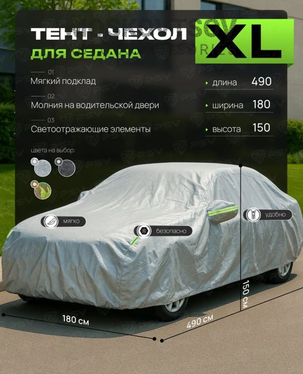Тент на машину для седана PSV с подкладкой и молнией ,размер XL(490*180*150), Серый